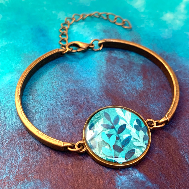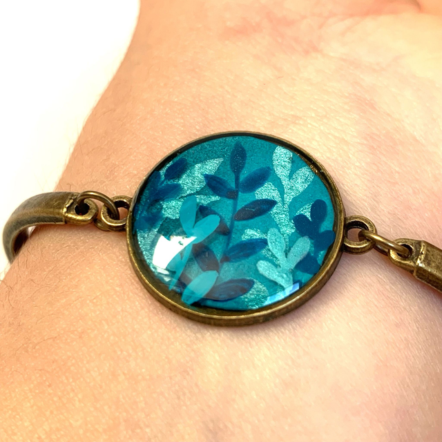 Pièce Unique ! Bijou peint à la main à l'aquarelle sur papier et recouvert de résine.